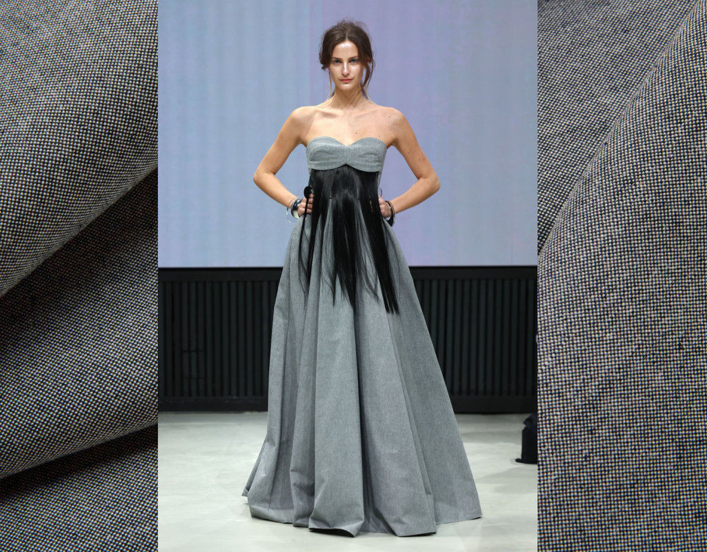 Bio-Canvas Stoff aus kbA Baumwolle mit 290 g/m² in Natur und Blau von Cotonea Inside Bio-Canvas aus kbA Baumwolle mit 290 g/m² in Natur und Blau von Cotonea Inside Bio-Canvas Stoff aus kbA Baumwolle mit 290 g/m² in Natur und Blau von Cotonea Fabrics, Fashion Show designed by Rebekka Ruetz